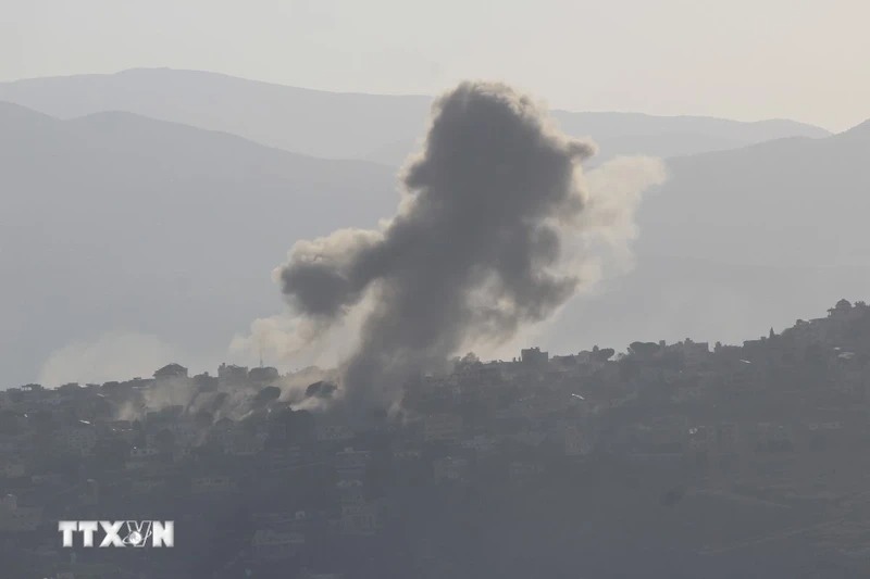 Khói bốc lên sau cuộc không kích của Israel xuống Khiam, Liban. (Ảnh: THX/TTXVN)