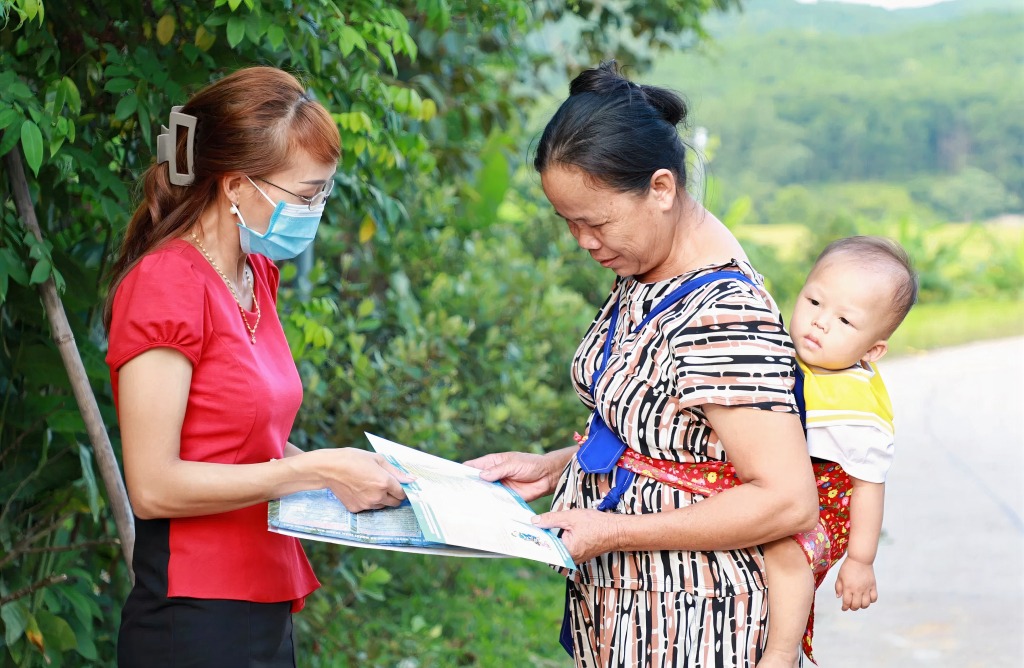 Cán bộ dân số huyện Vân Đồn tuyên truyền về SKSS-KHHGĐ cho các cặp vợ chồng trên địa bàn.