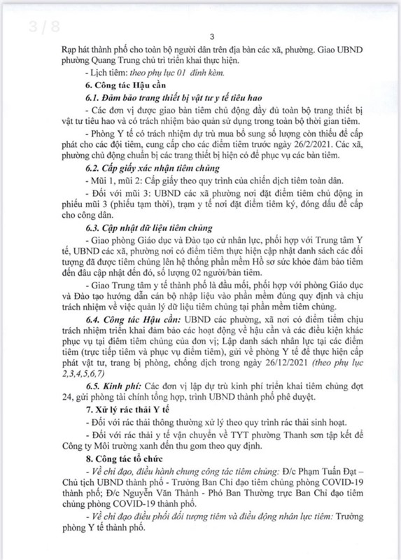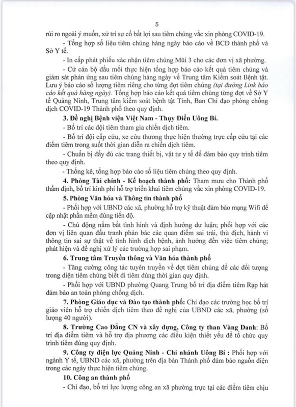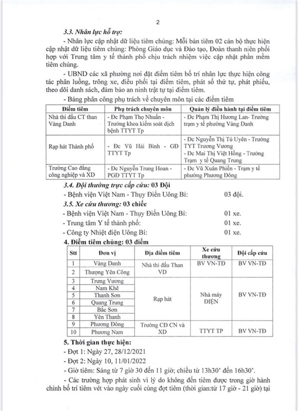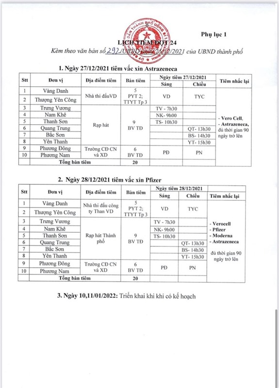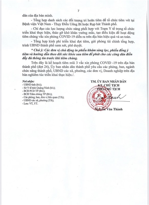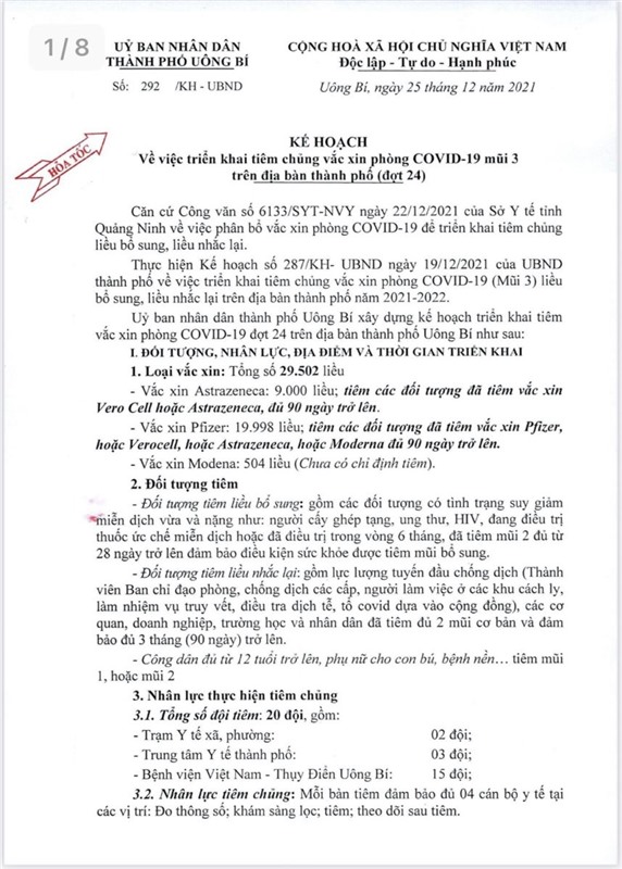 Kế hoạch về việc triển khai tiêm chủng vắc xin phòng COVID-19 mũi 3 trên địa bàn thành phố Uông Bí (đợt 24)