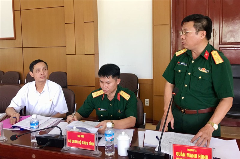 Thượng tá Quản Mạnh Hùng, Phó Chủ nhiệm chính trị Bộ Chỉ huy Quân sự tỉnh phát biểu chỉ đạo.
