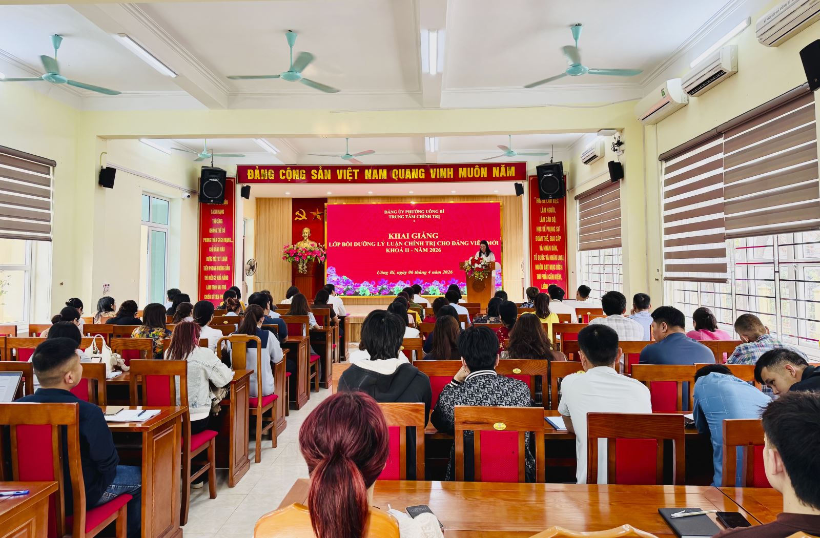 Sáng ngày 6/4/2026, Trung tâm Chính trị phường Uông Bí phối hợp với các ban xây dựng Đảng tổ chức khai giảng lớp bồi dưỡng lý luận chính trị cho đảng viên mới khóa II năm 2026.