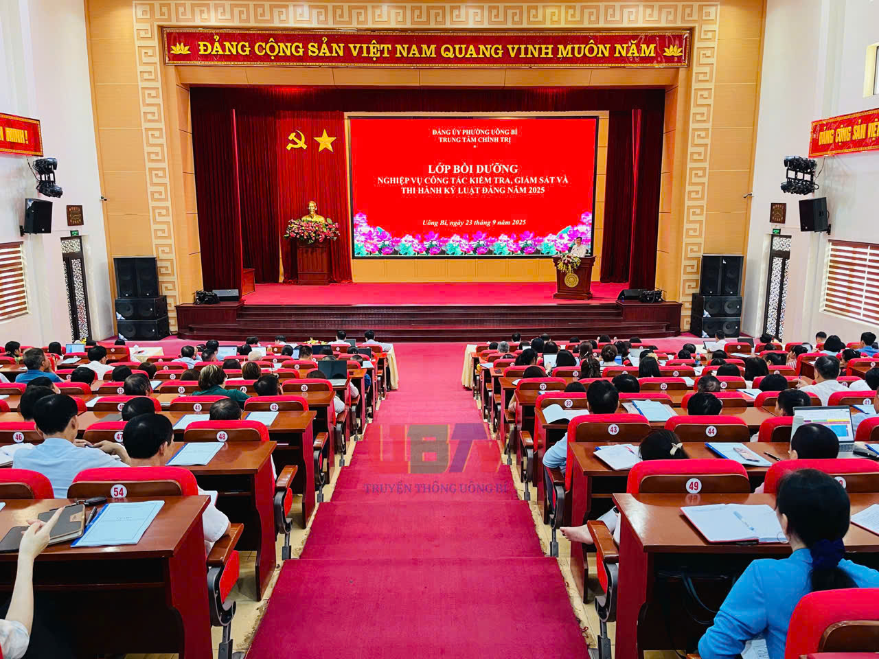 Ngày 23/09, Trung tâm chính trị Uông Bí tổ chức khai giảng Lớp bồi dưỡng nghiệp vụ công tác kiểm tra giám sát và thi hành kỷ luật Đảng năm 2025. Tham gia lớp có trên 300 học viên là Chủ nhiệm, Phó chủ nhiệm, chuyên viên Ủy ban kiểm tra Đảng ủy các phường Uông Bí, Vàng Danh, Yên Tử; cán bộ làm công tác kiểm tra giám sát các chi, đảng bộ trực thuộc Đảng uỷ 3 phường. Đồng chí Đào Ngọc Sơn, Phó Bí thư Thường trực Đảng ủy phường Uông Bí dự, chỉ đạo.