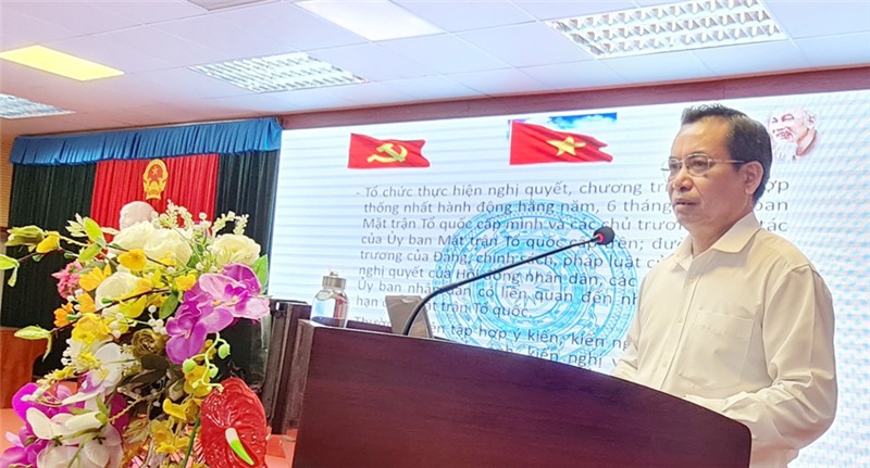 Đồng chí Hoàng Đức Hạnh, Phó Chủ tịch UBMTTQ Việt Nam tỉnh Quảng Ninh trao đổi các chuyên đề tại lớp tập huấn.