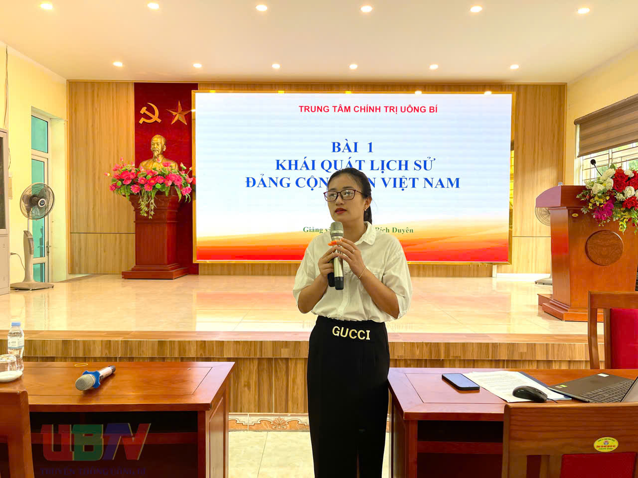 Ngày 18/8, Trung tâm chính trị Uông Bí tổ chức khai giảng Lớp bồi dưỡng nhận thức về Đảng khóa VI năm 2025. Tham gia lớp có 91 học viên là quần chúng ưu tú các phường Vàng Danh, Yên Tử và Uông Bí. Dự chương trình khai giảng có đồng chí Đào Ngọc Sơn, Phó Bí thư Thường trực Đảng ủy phường Uông Bí.