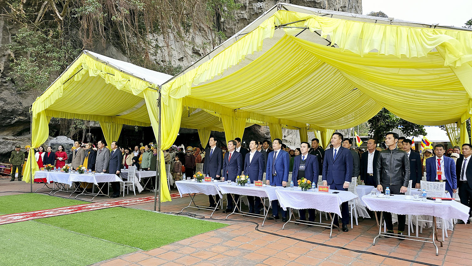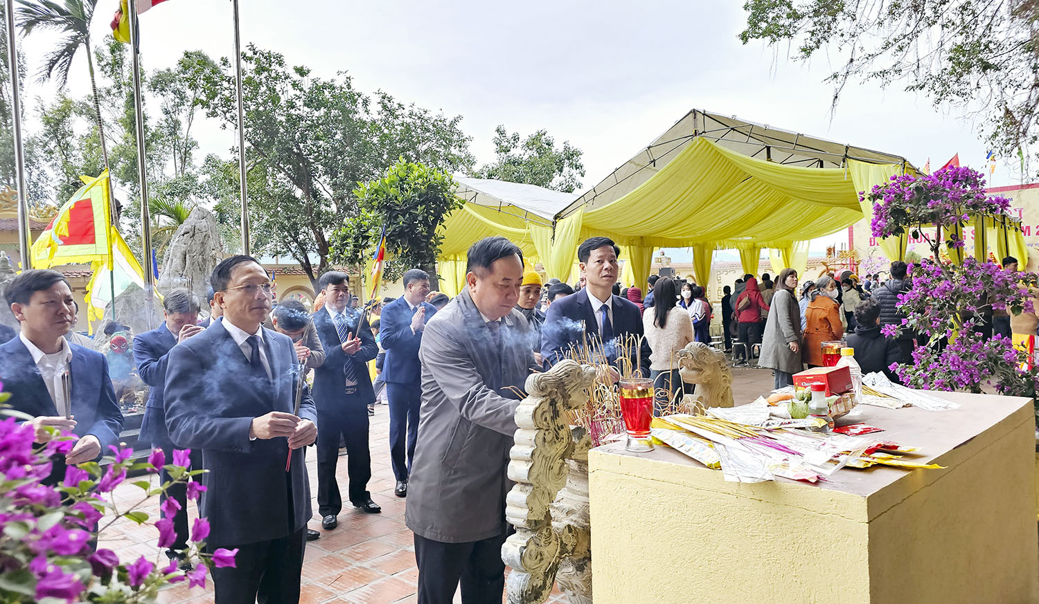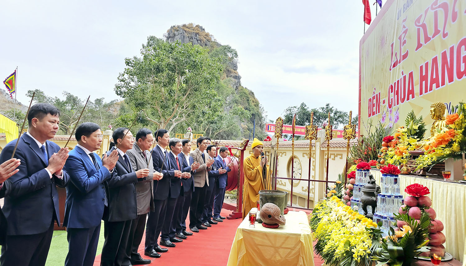 Về dự có các đồng chí: Mai Vũ Tuấn, Uỷ viên BCH Đảng bộ tỉnh, Bí thư Thành ủy; Nguyễn Chiến Thắng, Phó Bí thư Thường trực Thành ủy, Chủ tịch HĐND thành phố; Phạm Tuấn Đạt, Phó Bí thư Thành ủy, Chủ tịch UBND thành phố cùng đông đảo phật tử, Nhân dân, du khách thập phương.
