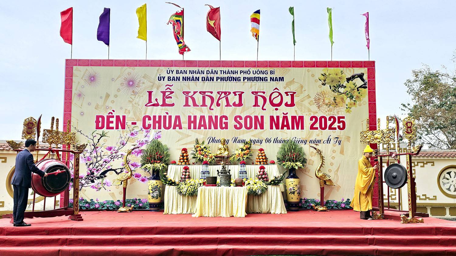 Sáng ngày 3/2/2025 (tức ngày mồng 06/1 Âm lịch), tại Di tích lịch sử văn hóa Đền - Chùa Hang Son, phường Phương Nam đã long trọng tổ chức Lễ khai hội Đền - Chùa Hang Son năm 2025.