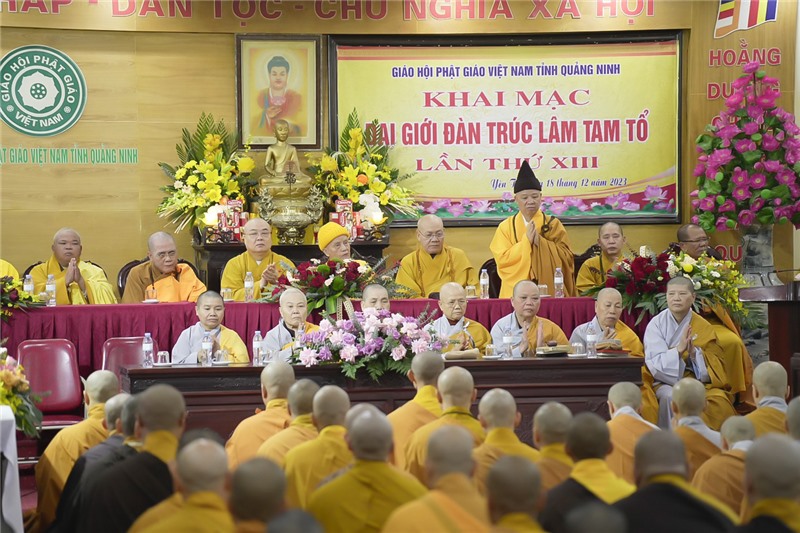 Tại buổi lễ, Thượng tọa Thích Đạo Hiển, Phó trưởng ban, Chánh Thư ký Ban Trị sự GHPGVN tỉnh báo cáo công tác tổ chức Đại giới đàn Trúc Lâm Tam Tổ lần thứ XIII. Theo đó, Ban Tổ chức Đại giới đàn do Ban Trị sự GHPGVN tỉnh Quảng Ninh thành lập gồm 15 vị, do Hòa thượng Thích Thanh Quyết - Trưởng ban Trị sự GHPGVN tỉnh Quảng Ninh làm Trưởng Ban tổ chức.