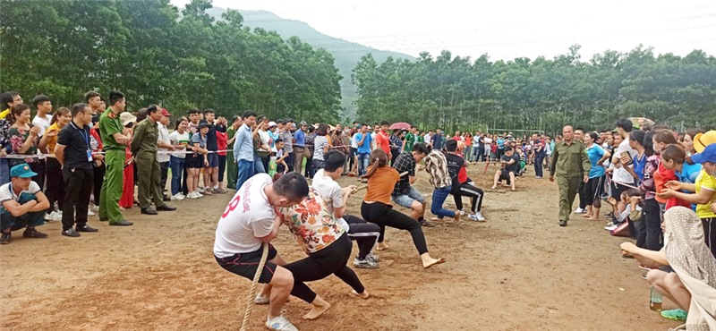 Môn thi kéo co thu hút sự cổ vũ nhiệt tình của nhân dân địa phương.
