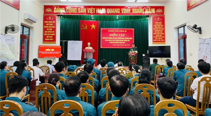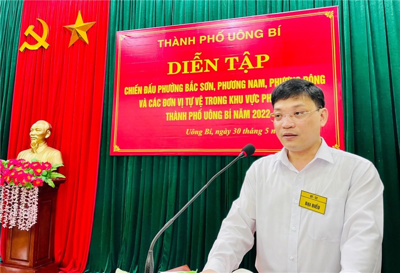 Sáng 30/5, TP Uông Bí tổ chức khai mạc diễn tập chiến đấu phường Bắc Sơn, Phương Nam, Phương Đông và các đơn vị tự vệ trong khu vực phòng thủ năm 2022. Tham dự khai mạc có Thượng tá Nguyễn Văn Dân, Phó Tham mưu trưởng Bộ Chỉ huy quân sự tỉnh Quảng Ninh; các đồng chí: Nghiêm Xuân Cường, Tỉnh ủy viên, Bí thư Thành ủy, Chủ tịch HĐND thành phố, Bí thư Đảng uỷ quân sự thành phố; Phạm Tuấn Đạt, Phó Bí thư Thành ủy, Chủ tịch UBND thành phố, Trưởng Ban chỉ đạo diễn tập; các đồng chí trong BTV Thành ủy, Thường trực HĐND – UBND thành phố; Ban chỉ đạo diễn tập; đại diện các phòng, ban, ngành, đoàn thể; lãnh đạo các phường Bắc Sơn, Phương Đông, Phương Nam và các đơn vị tự vệ.