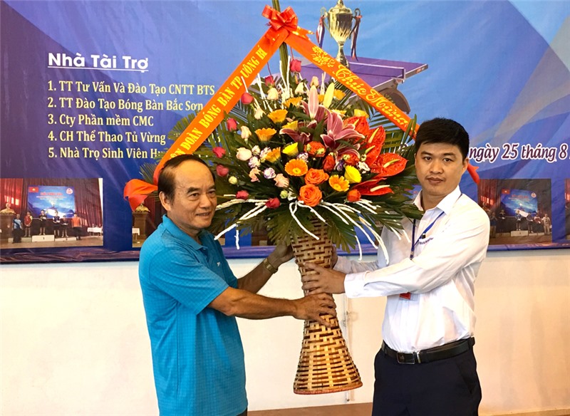 Liên đoàn bóng bàn TP Uông Bí tặng hoa chúc mừng BTC giải đấu.