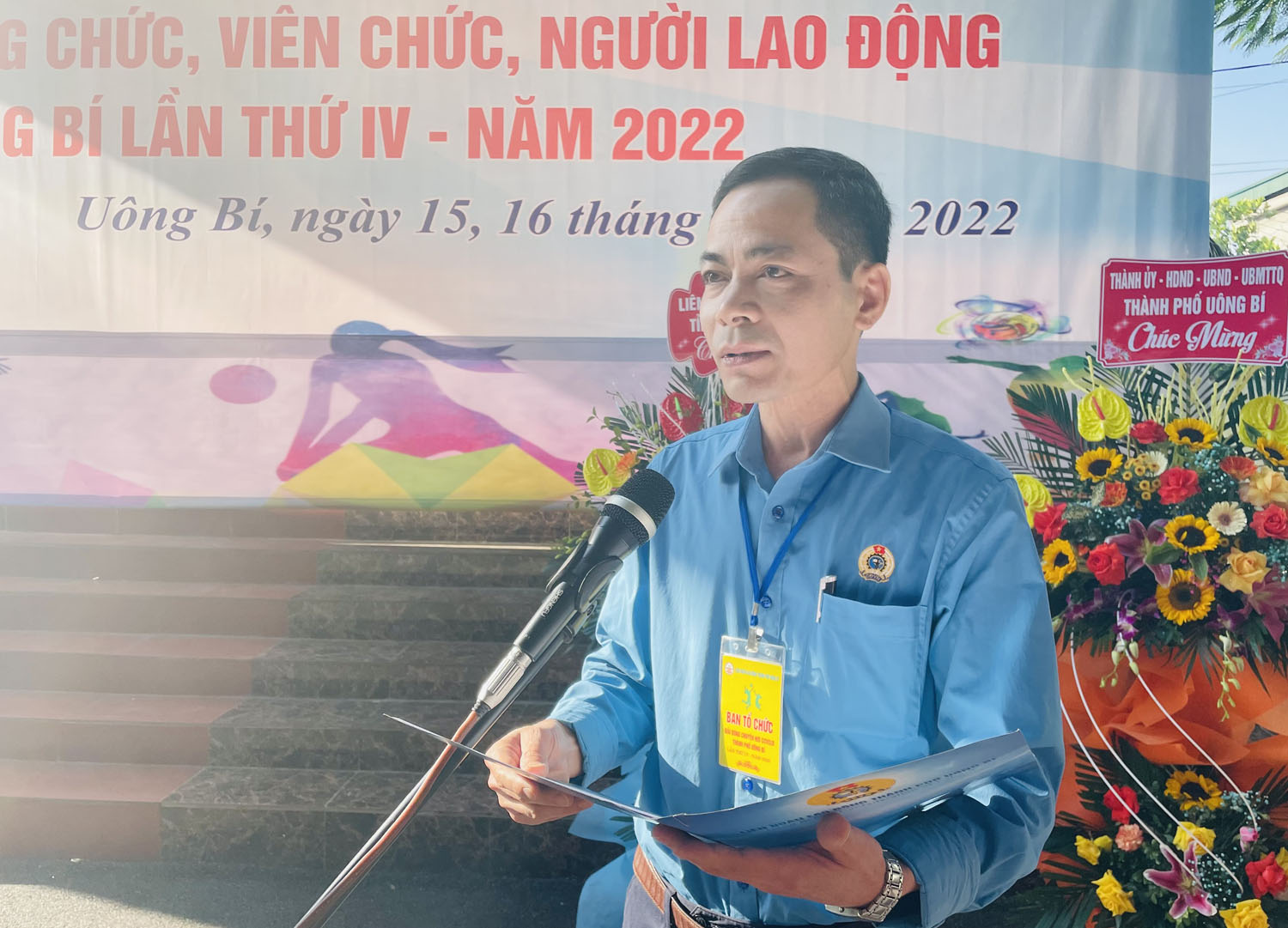 Đồng chí Cù Văn Thắng, Chủ tịch LĐLĐ TP Uông Bí phát biểu khai mạc giải.