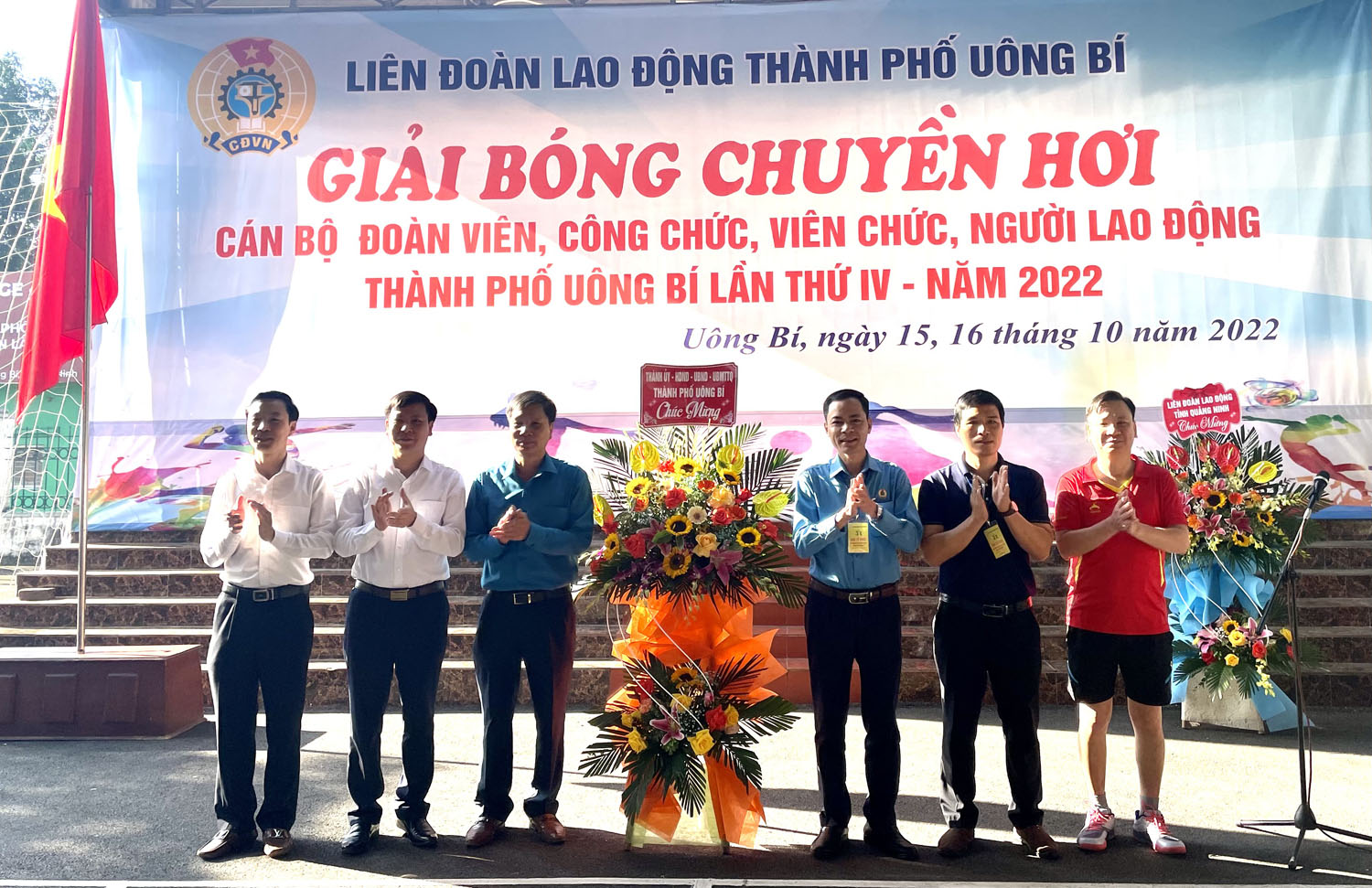 Sáng 15/10, LĐLĐ thành phố Uông Bí tổ chức khai mạc Giải bóng chuyền hơi cán bộ, đoàn viên, công chức, viên chức, người lao động thành phố lần thứ IV – năm 2022. Dự, động viên giải có các đồng chí: Bùi Minh Thanh, Phó Chủ tịch Thường trực LĐLĐ tỉnh Quảng Ninh; Nguyễn Văn Thành, UVBTV Thành ủy, Phó Chủ tịch Thường trực UBND TP Uông Bí; Đỗ Trường Sơn, UVBTV Thành uỷ, Phó Chủ tịch HĐND thành phố.