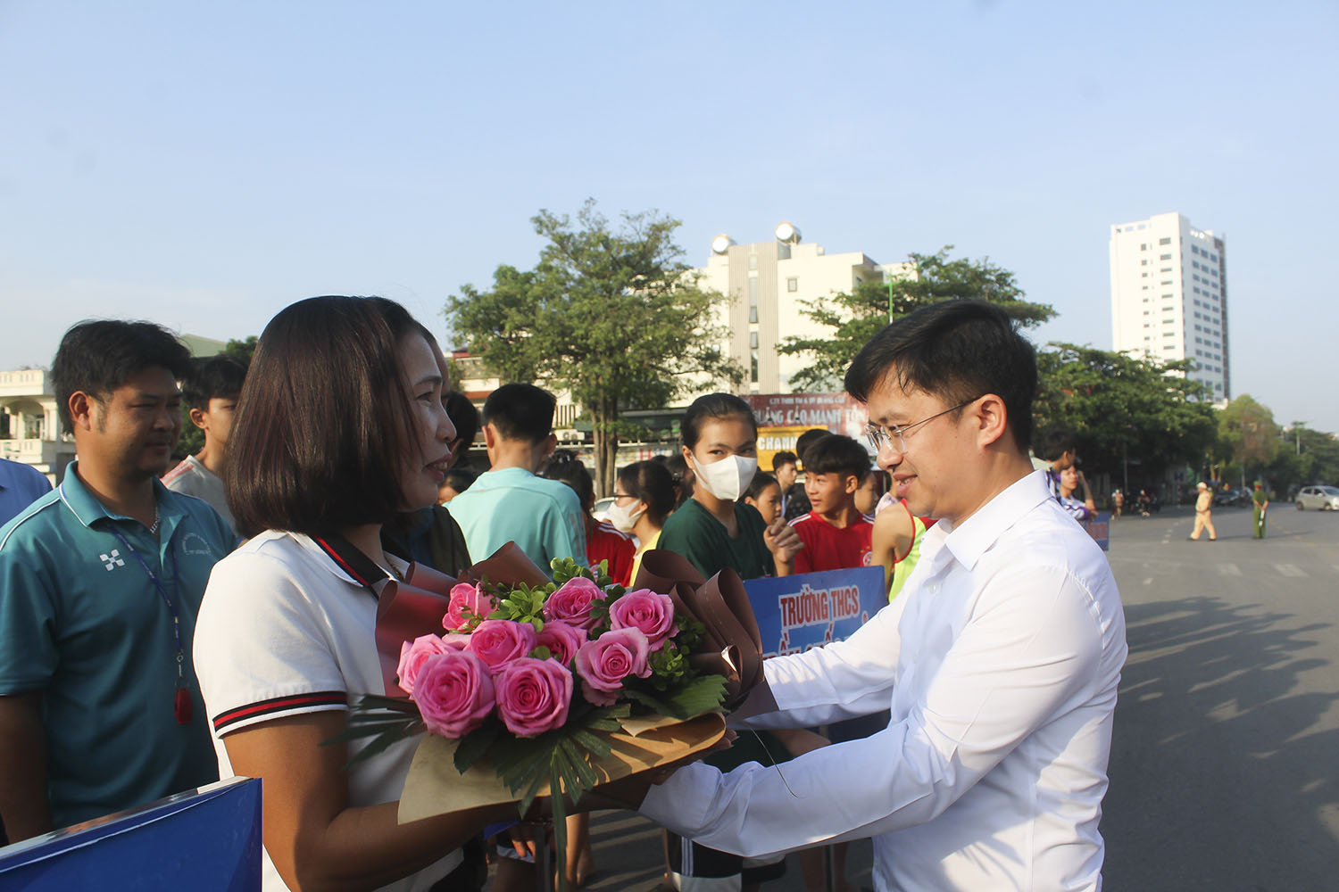 Lãnh đạo thành phố tặng hoa, cờ lưu niệm cho các đoàn vận động viên tham gia giải.