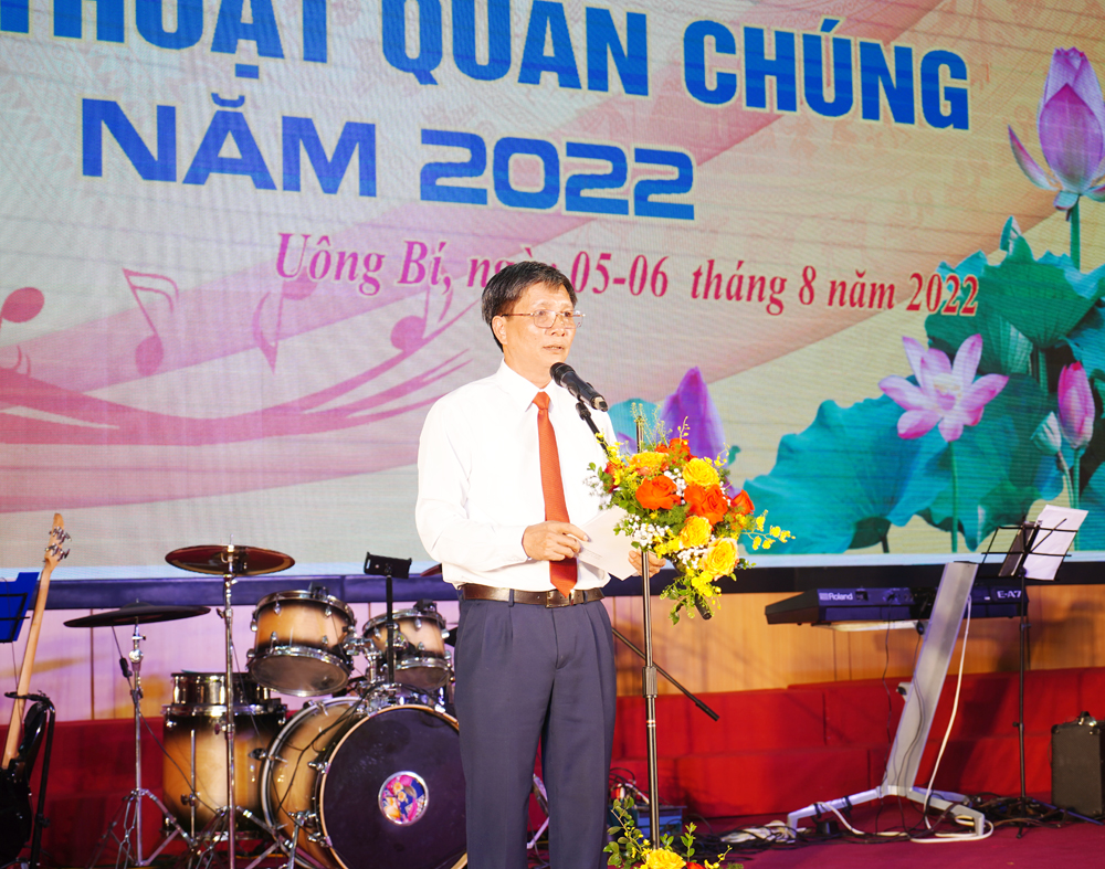 Đồng chí Nguyễn Văn Thành, UVBTV Thành ủy, Phó Chủ tịch Thường trực UBND thành phố, Trưởng BTC Hội diễn nghệ thuật quần chúng TP Uông Bí năm 2022 phát biểu khai mạc.