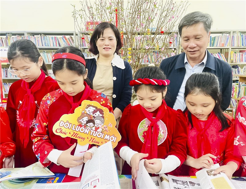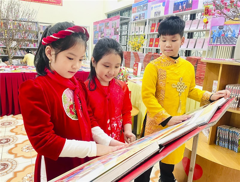 Độc giả thiếu nhi thích thú check-in tại Hội Sách, Báo Xuân Giáp Thìn 2024.