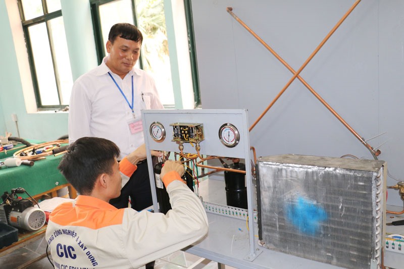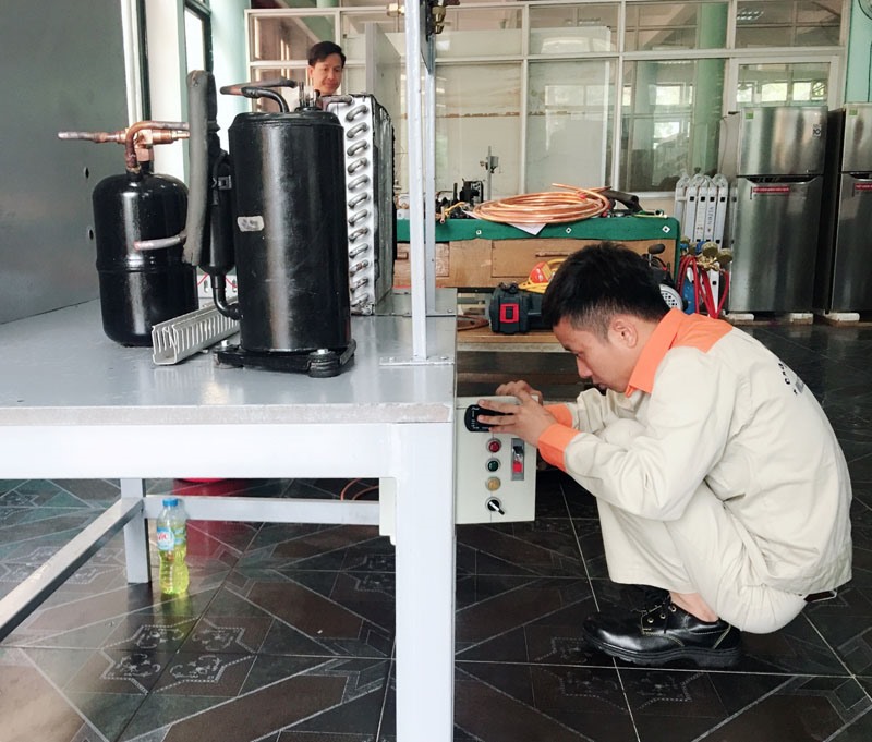 Các thí sinh tham gia phần thi nghề điện lạnh.