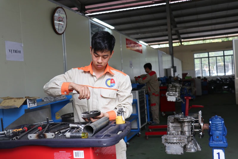Thí sinh tham gia phần thi Công nghệ ô tô.