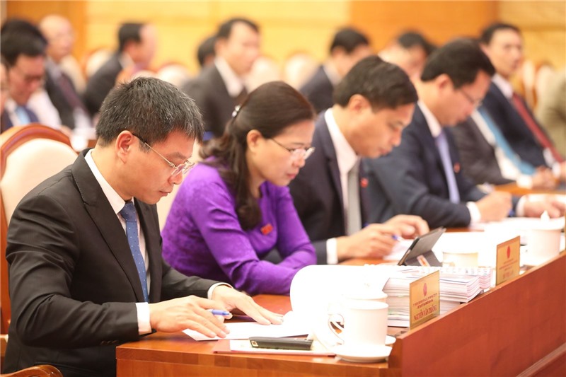 Các đại biểu nghiên cứu tài liệu tại kỳ họp.