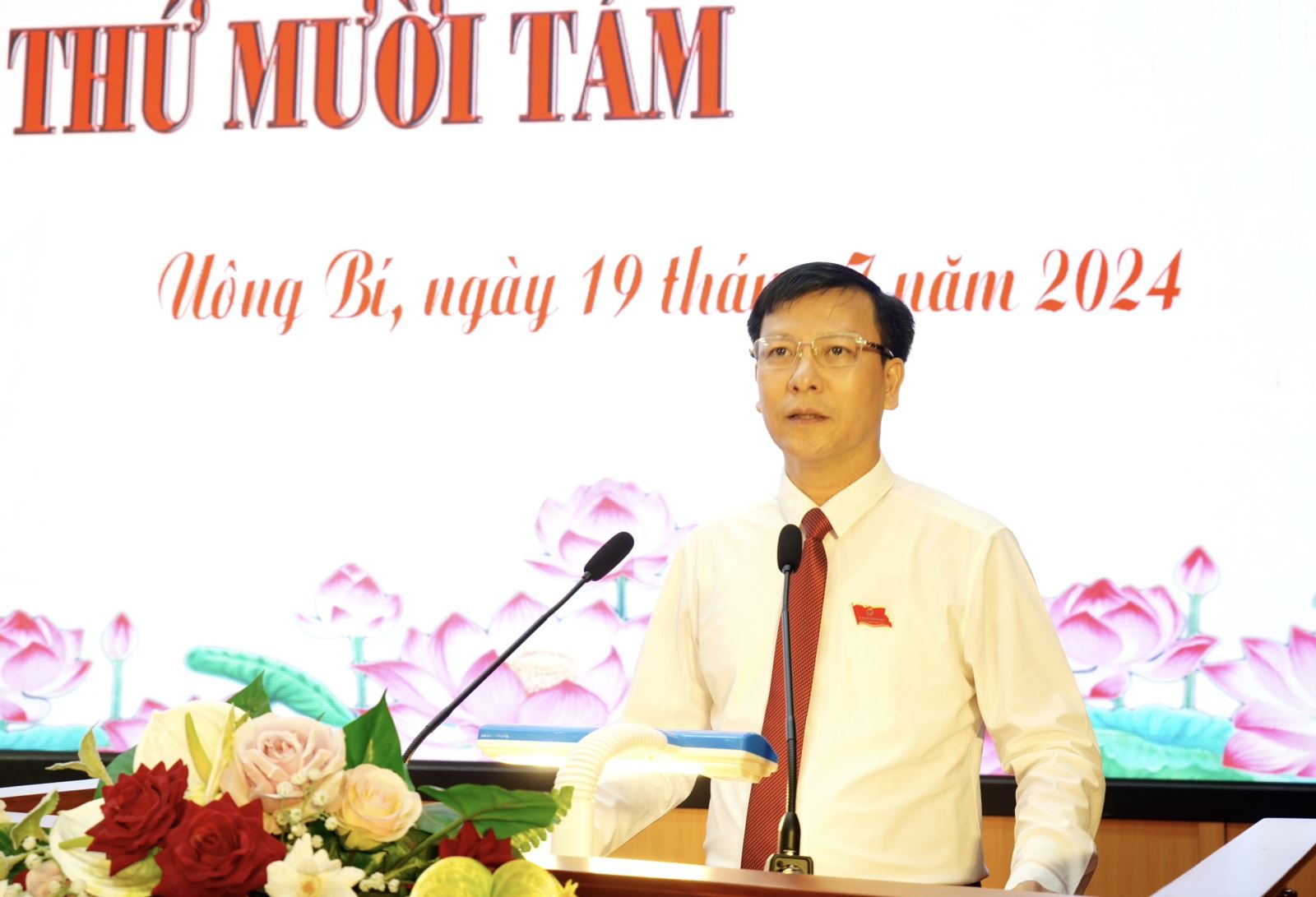 Đồng chí Chủ tịch HĐND thành phố cũng đề nghị các đại biểu thảo luận đề xuất các giải pháp phát huy các tiềm năng, thế mạnh, nguồn lực kinh tế, giá trị văn hóa, tinh thần, nhất là sau thành công Hội thảo khoa học “Nhận diện, bảo tồn và phát huy giá trị di sản vùng đất Uông Bí trong định hướng phát triển bền vững thành phố Uông Bí”; tập trung triển khai quy hoạch, thúc đẩy đầu tư gắn với quản lý chặt chẽ, sử dụng hiệu quả đất đai, tài nguyên, bảo vệ môi trường; tập trung xây dựng, chỉnh trang đô thị thành phố theo hướng từng bước hoàn thiện và nâng cao các tiêu chí đô thị loại 1, Thành phố Di sản.