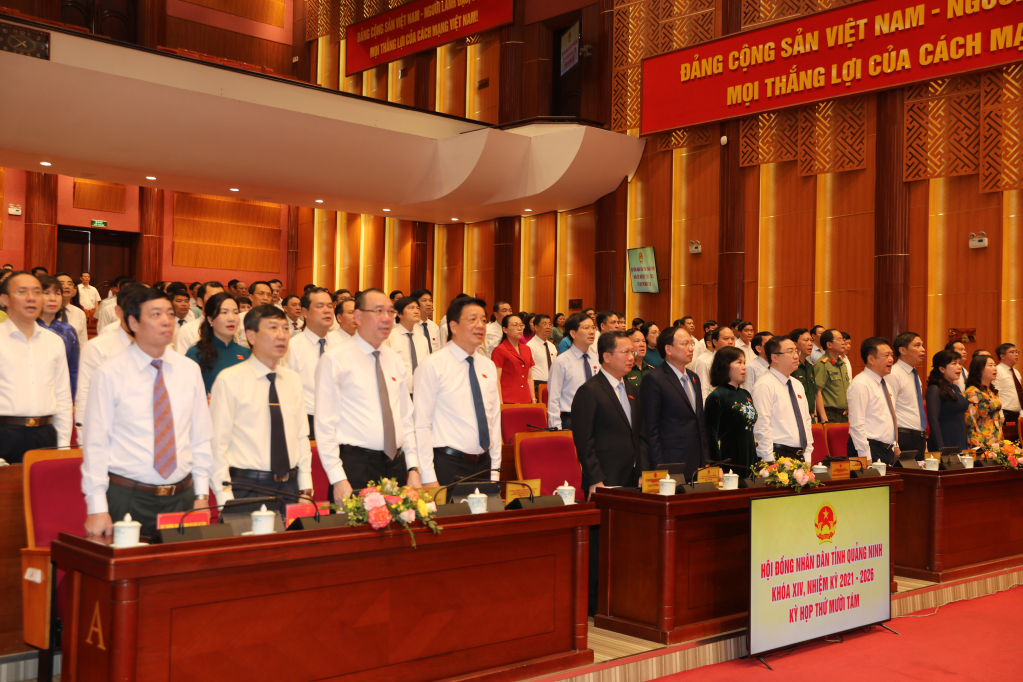 Đồng thời, xem xét thông qua một số chính sách quan trọng như: Nghị quyết quy định chính sách hỗ trợ bảo hiểm y tế cho đối tượng người thuộc hộ cận nghèo, hộ nông nghiệp, lâm nghiệp, ngư nghiệp có mức sống trung bình trên địa bàn tỉnh; nghị quyết quy định giá dịch vụ khám bệnh, chữa bệnh không thuộc phạm vi thanh toán của Quỹ Bảo hiểm y tế; nghị quyết sửa đổi, bổ sung quy định mức học phí đối với cơ sở giáo dục mầm non, giáo dục phổ thông công lập; xem xét chủ trương thành lập các phường: Bình Dương, Thủy An, Bình Khê, Yên Đức thuộc TX Đông Triều và thành lập TP Đông Triều. HĐND tỉnh thống nhất một số nội dung để UBND tỉnh quyết định theo thẩm quyền; nghị quyết về việc kéo dài thời gian thực hiện và giải ngân kế hoạch vốn đầu tư công...