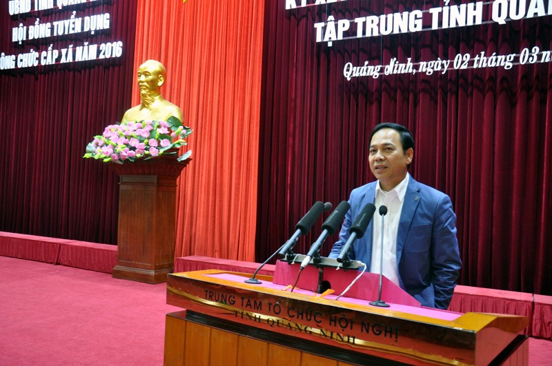 Ngày 2/3, tại TP Hạ Long, đã diễn ra buổi khai mạc xét tuyển công chức cấp xã năm 2016 tỉnh. Đồng chí Đặng Huy Hậu, Ủy viên BTV Tỉnh ủy, Phó Chủ tịch Thường trực UBND tỉnh, Chủ tịch Hội đồng Xét tuyển công chức cấp xã năm 2016 tỉnh dự và phát biểu khai mạc.