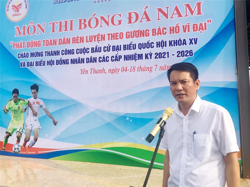 Chiều 04/7, phường Yên Thanh tổ chức khai mạc môn thi Bóng đá nam trong khuôn khổ các môn thi đấu của Đại hội thể dục thể thao phường năm 2021.