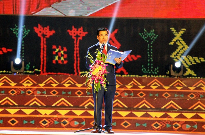 Đồng chí Trương Công Ngàn, Bí thư Huyện ủy, Chủ tịch UBND huyện phát biểu khai mạc Tuần Văn hóa, Thể thao các dân tộc vùng Đông Bắc tỉnh Quảng Ninh lần thứ II.