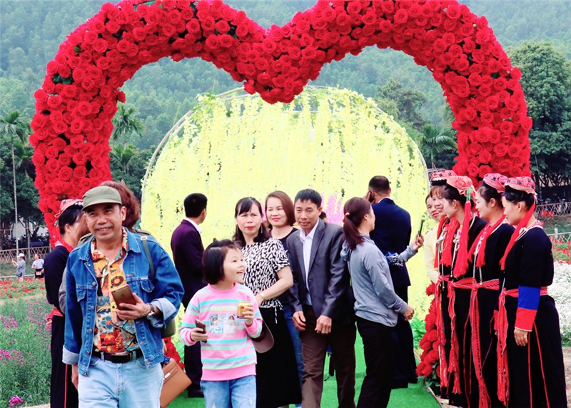 Trong ngày khai trương, đông đảo du khách đến tham quan, check in tại Thung lũng hoa Yên Tử.