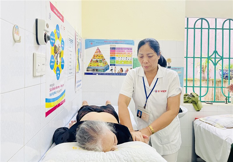 Thầy thuốc Hội Đông y phường Quang Trung chăm sóc sức khỏe cho người có công.