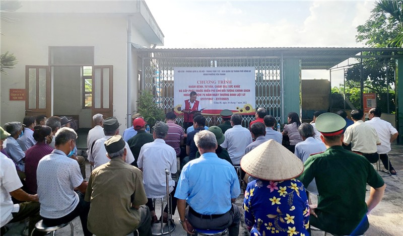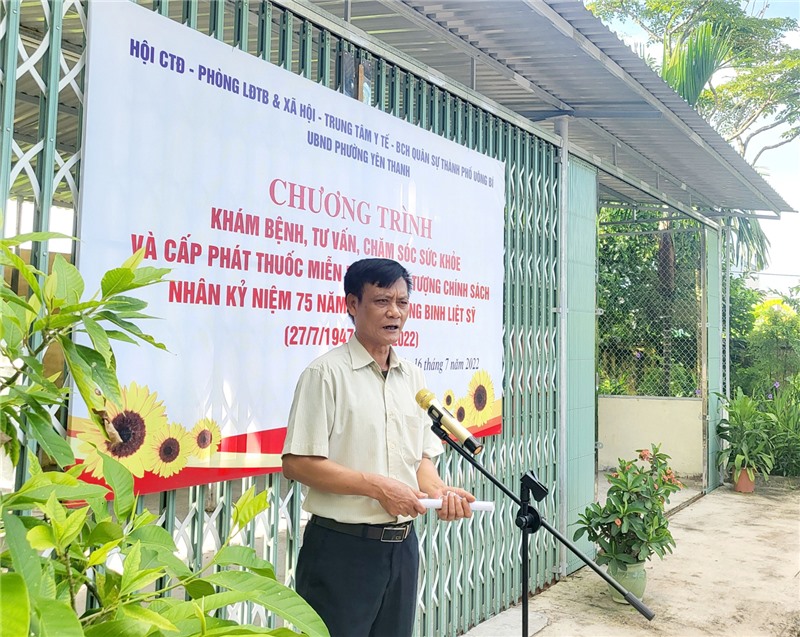Nhân dịp kỷ niệm 75 năm ngày Thương binh, liệt sỹ 27/7 (1947-2022), sáng ngày 16/7, Hội Chữ thập đỏ TP Uông Bí phối hợp với Phòng LĐ,TB&XH, Trung tâm Y tế, Ban CHQS thành phố và UBND phường Yên Thanh tổ chức chương trình khám bệnh, tư vấn, chăm sóc sức khỏe và cấp phát thuốc miễn phí cho các đối tượng chính sách trên địa bàn phường Yên Thanh.