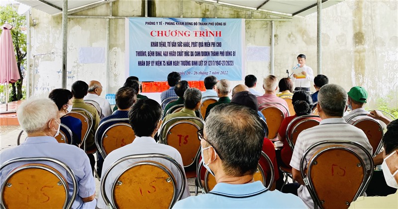 Nhân dịp kỷ niệm 75 năm Ngày Thương binh, Liệt sỹ 27/7 và 61 năm Ngày “Vì nạn nhân chất độc da cam Việt Nam” 10/8, sáng ngày 20/7, Phòng Y tế thành phố phối hợp với Phòng khám đa khoa Đông Đô Uông Bí triển khai Chương trình khám bệnh, tư vấn sức khỏe miễn phí và tặng quà cho các thương binh, bệnh binh, nạn nhân chất độc da cam trên địa bàn.