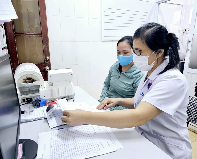 Bác sĩ tại Trung tâm Y tế thành phố tư vấn về cách chăm sóc và sử dụng thuốc cho các nữ CNLĐ.