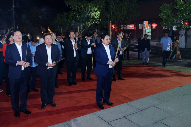 Cùng đi với Thủ tướng có các đồng chí Ủy viên Trung ương Đảng: Bộ trưởng Bộ Văn hóa, Thể thao và Du lịch Nguyễn Văn Hùng, Bí thư Tỉnh ủy Hải Dương Trần Đức Thắng; lãnh đạo các bộ, ngành, cơ quan Trung ương và tỉnh Hải Dương.
