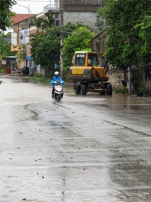 Các xã, phường, đơn vị huy động nhân lực, máy móc khơi thông dòng chảy tại điểm bị ngập.
