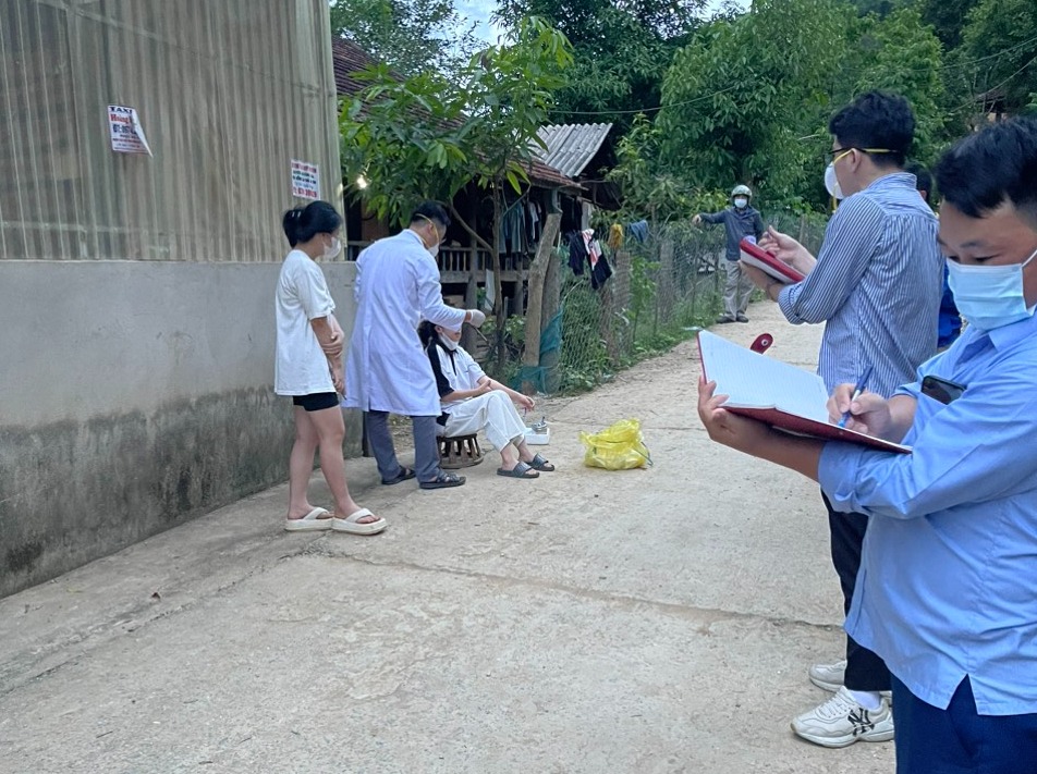 CDC Nghệ An giám sát tiến hành điều tra và lấy mẫu xét nghiệm tại xã Phà Đánh, huyện huyện Kỳ Sơn.