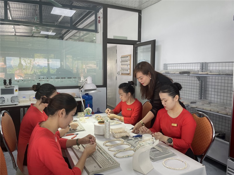 Trên địa bàn tỉnh Quảng Ninh hiện có nhiều doanh nghiệp do phụ nữ làm chủ. Trong ảnh: Doanh nhân Nguyễn Thùy Hương, Giám đốc Công ty CP Ngọc Trai Hạ Long hướng dẫn nhân viên các kỹ thuật để cho ra những sản phẩm ngọc trai đảm bảo chất lượng.