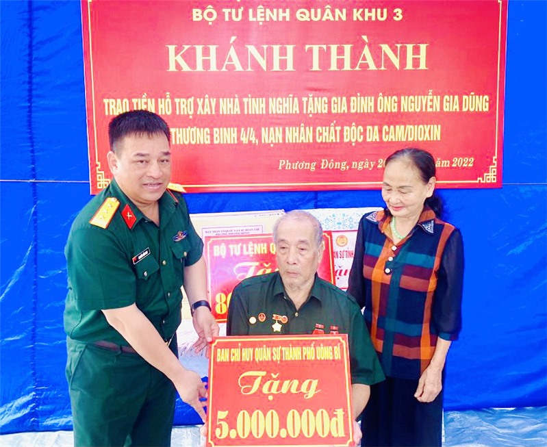 Ngày 26/7, Bộ Tư lệnh Quân khu 3, Ban CHQS thành phố Uông Bí phối hợp tổ chức lễ khánh thành, bàn giao nhà tình nghĩa cho gia đình ông Nguyễn Gia Dũng - Thương binh 4/4, nạn nhân chất độc da cam, trú tại khu Bí Trung 1, phường Phương Đông.