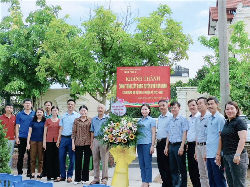 Lãnh đạo phường Quang Trung tặng hoa chúc mừng khánh thành công trình.