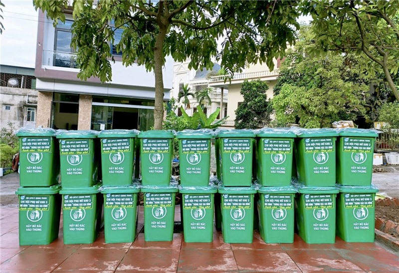 Nhân dịp này, các đại biểu và nhân dân khu 3 đã tiến hành lắp đặt bổ sung thêm 45 thùng rác mới tại tổ 9, khu 3, phường Quang Trung.