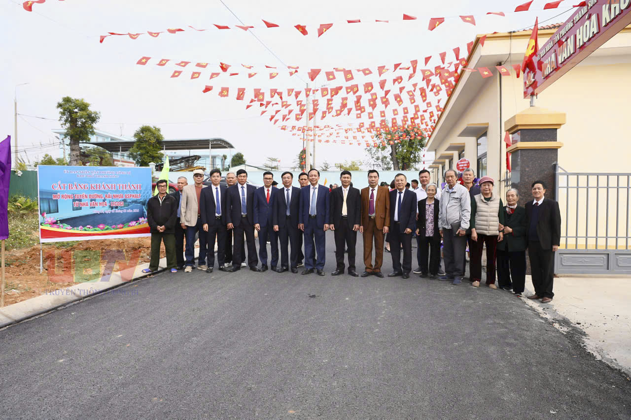 Các đại biểu chụp ảnh lưu niệm cùng cán bộ, Đảng viên và Nhân dân khu 7 tại tuyến đường mới.