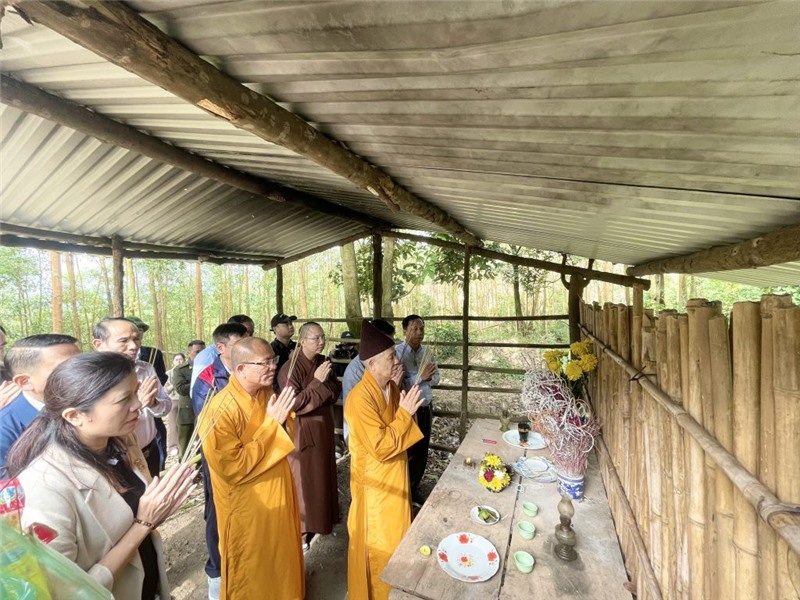 Đoàn khảo sát dâng hương tại nơi đặt nền móng, vết tích còn lại của chùa Hồ, núi Phượng Hoàng.