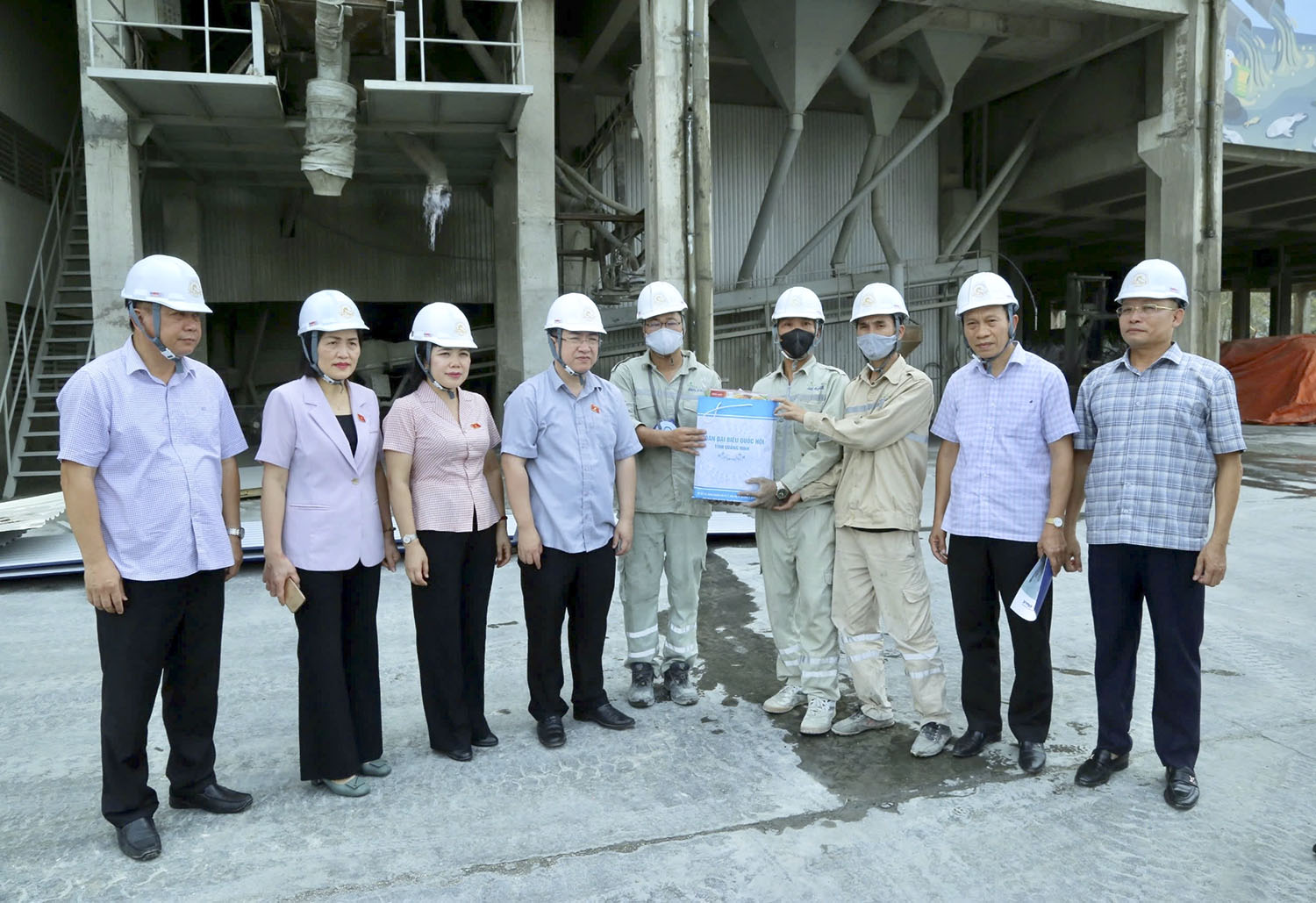 Đồng chí Đặng Xuân Phương, Phó Bí thư Tỉnh ủy, Trưởng đoàn Đại biểu Quốc hội tỉnh cùng đoàn thăm, tặng quà tại Công ty CP Xi măng và Xây dựng Quảng Ninh.