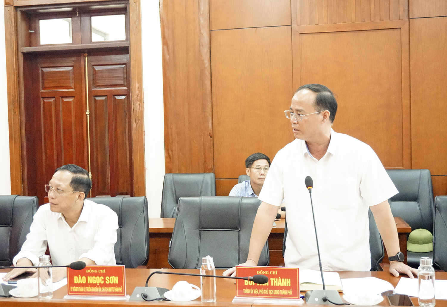 Đồng chí Bùi Văn Thành, Phó Chủ tịch UBND thành phố báo cáo tại buổi làm việc.
