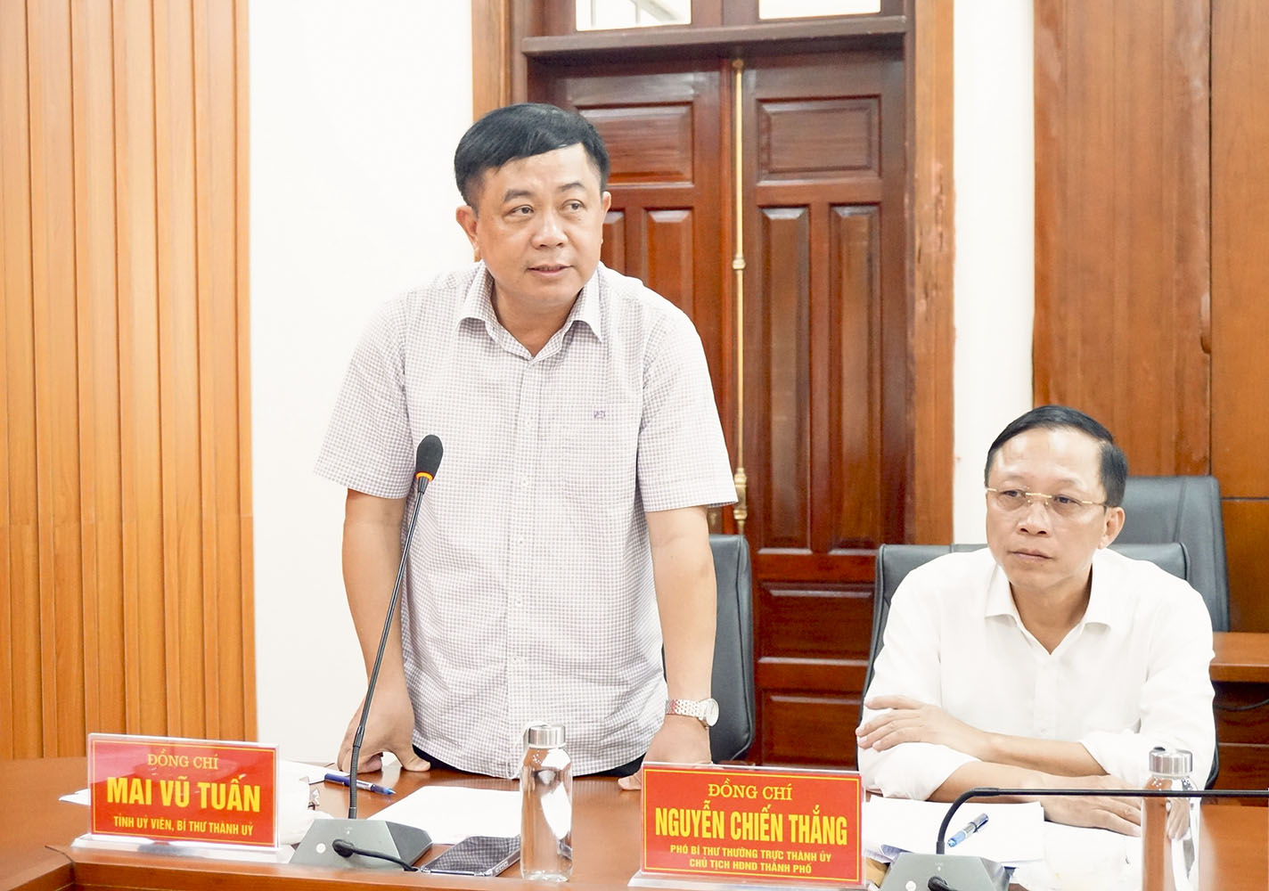 Tiếp và làm việc với đoàn có các đồng chí: Mai Vũ Tuấn, Uỷ viên BCH Đảng bộ tỉnh, Bí thư Thành uỷ; Nguyễn Chiến Thắng, Phó Bí thư Thường trực Thành uỷ, Chủ tịch HĐND thành phố; lãnh đạo các phòng, ban, ngành.