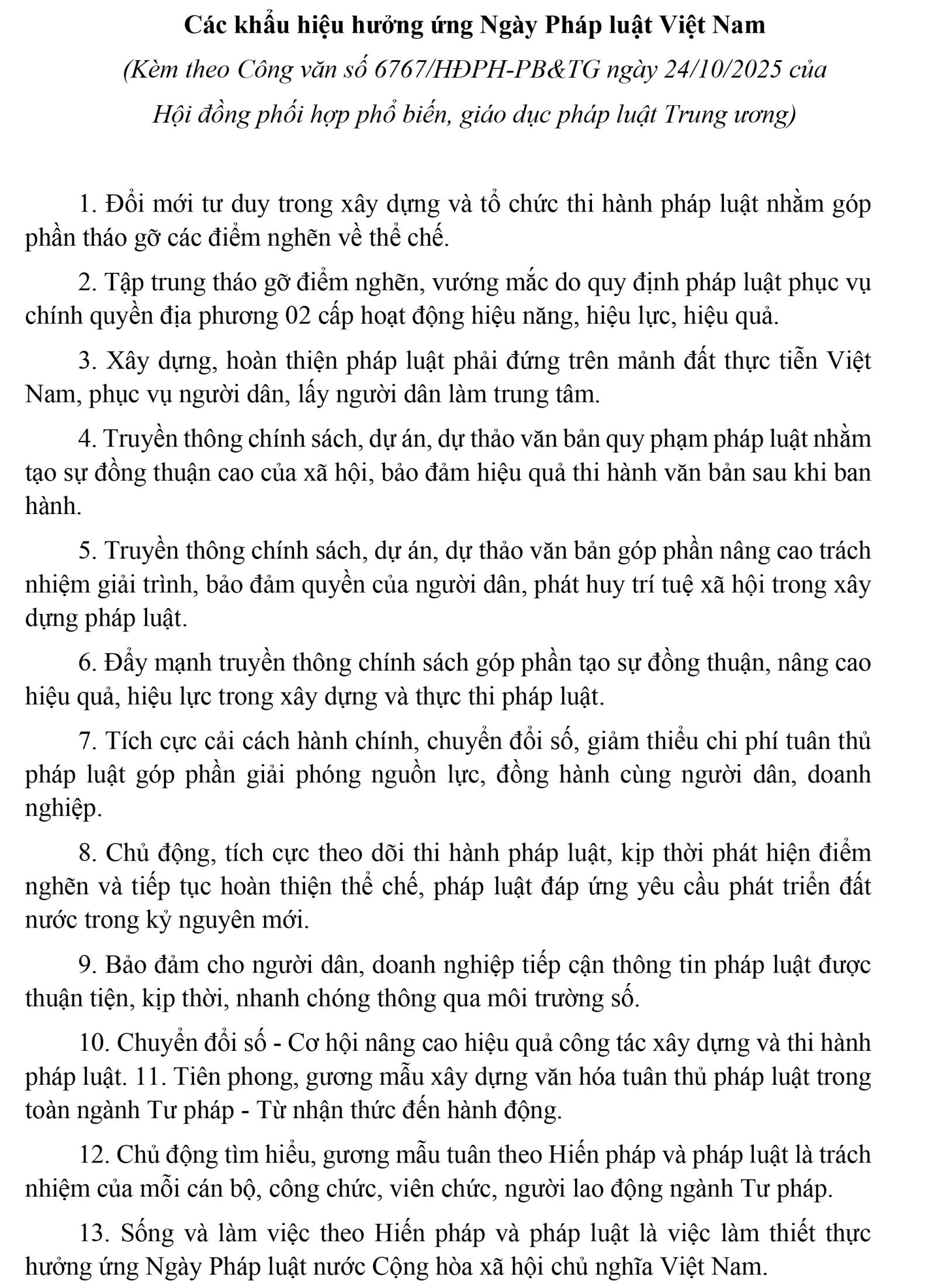 Khẩu hiệu hưởng ứng Ngày Pháp luật nước Cộng hòa xã hội chủ nghĩa Việt Nam (gọi tắt là Ngày Pháp luật Việt Nam)