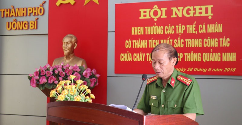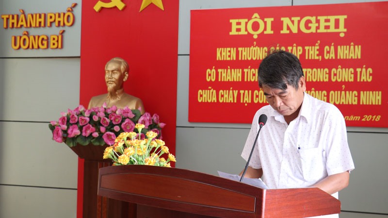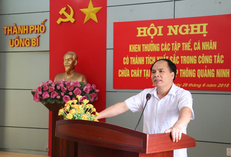 Ngày 28-6, TP Uông Bí tổ chức khen thưởng các tập thể và cá nhân nỗ lực tham gia công tác chữa cháy trong vụ cháy xảy ra tại công ty cổ phần thông Quảng Ninh vào chiều 21-6-2018. Các đồng chí Trần Văn Lâm, Tỉnh ủy viên, Bí thư thành ủy, Chủ tịch HĐND thành phố; Nguyễn Mạnh Hà, Phó Bí thư Thành ủy, Chủ tịch UBND thành phố dự hội nghị.