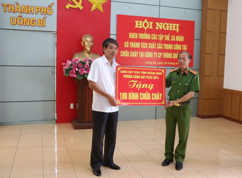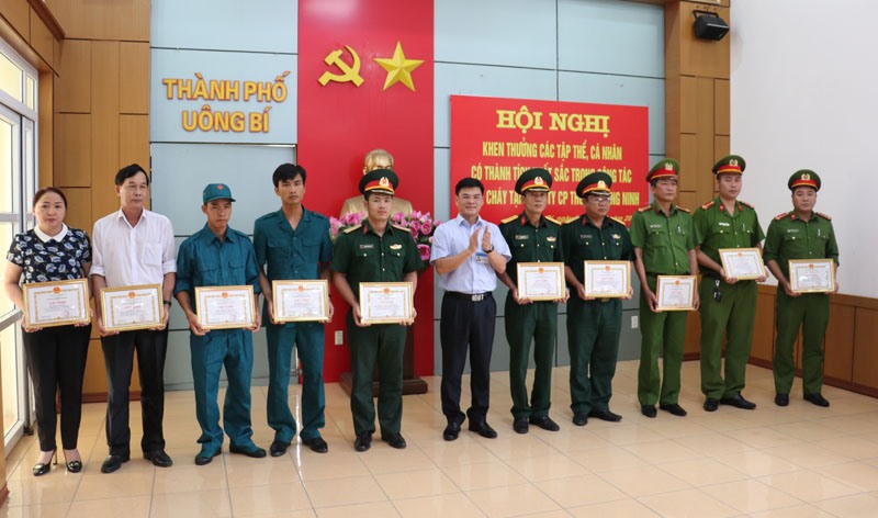 Tại hội nghị, thành phố đã khen thưởng 10 tập thể và 20 cá nhân có nhiều nỗ lực trong công tác chữa cháy tại Công ty Cổ phần thông Quảng Ninh.