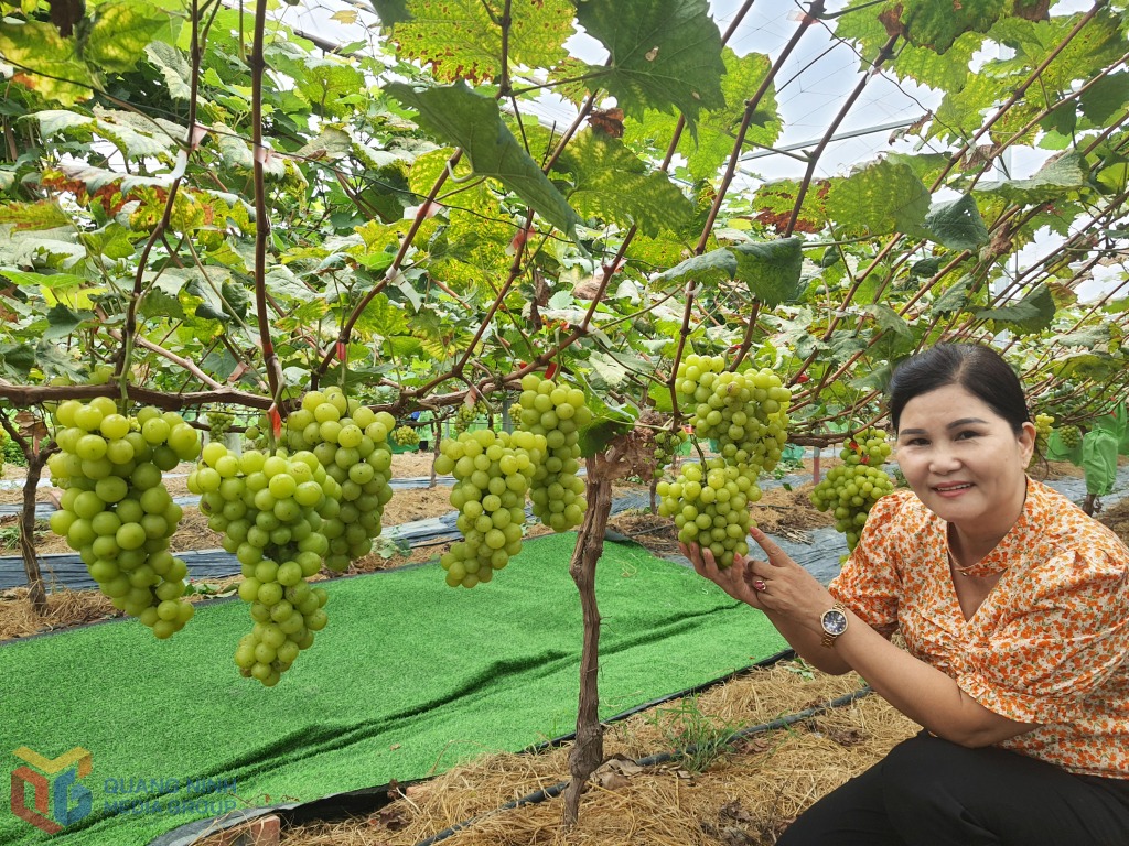 Giàn nho sữa giống Hàn Quốc được HTX nông nghiệp An Sinh (TP Đông Triều) ứng dụng công nghệ nhà giàn để trồng thành công