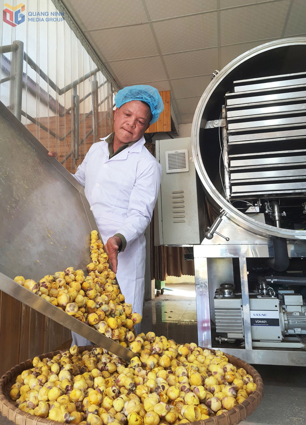 Tháng 1 vừa qua, một tin vui đến với nông sản Quảng Ninh, đó là sản phẩm trà hoa vàng Ba Chẽ của Công ty CP Kinh doanh lâm sản Đạp Thanh đã được trung ương chứng nhận là sản phẩm OCOP 5 sao quốc gia. Trà hoa vàng Ba Chẽ được biết đến là thức trà mang tinh chất đặc biệt tốt cho sức khoẻ con người. Hiện nay, bông trà được Công ty Đạp Thanh sấy thăng hoa, công nghệ sấy nông sản hiện đại nhất hiện nay, khiến cho chất lượng, thương hiệu trà hoa vàng Ba Chẽ càng được khẳng định. Ông Nịnh Văn Trắng, Giám đốc Công ty CP Kinh doanh lâm sản Đạp Thanh, cho biết: Với công nghệ sấy thăng hoa, bông trà khô trông không khác bông trà còn tươi nguyên trên cây lá, trong khi đó giữ được 97% về màu sắc, hình dáng và giữ được 99% về tinh chất tự nhiên, hoàn toàn khắc phục được những nhược điểm của sấy thủ công trước đây là bông hoa bị gãy vụn, đổi màu, dễ mốc…