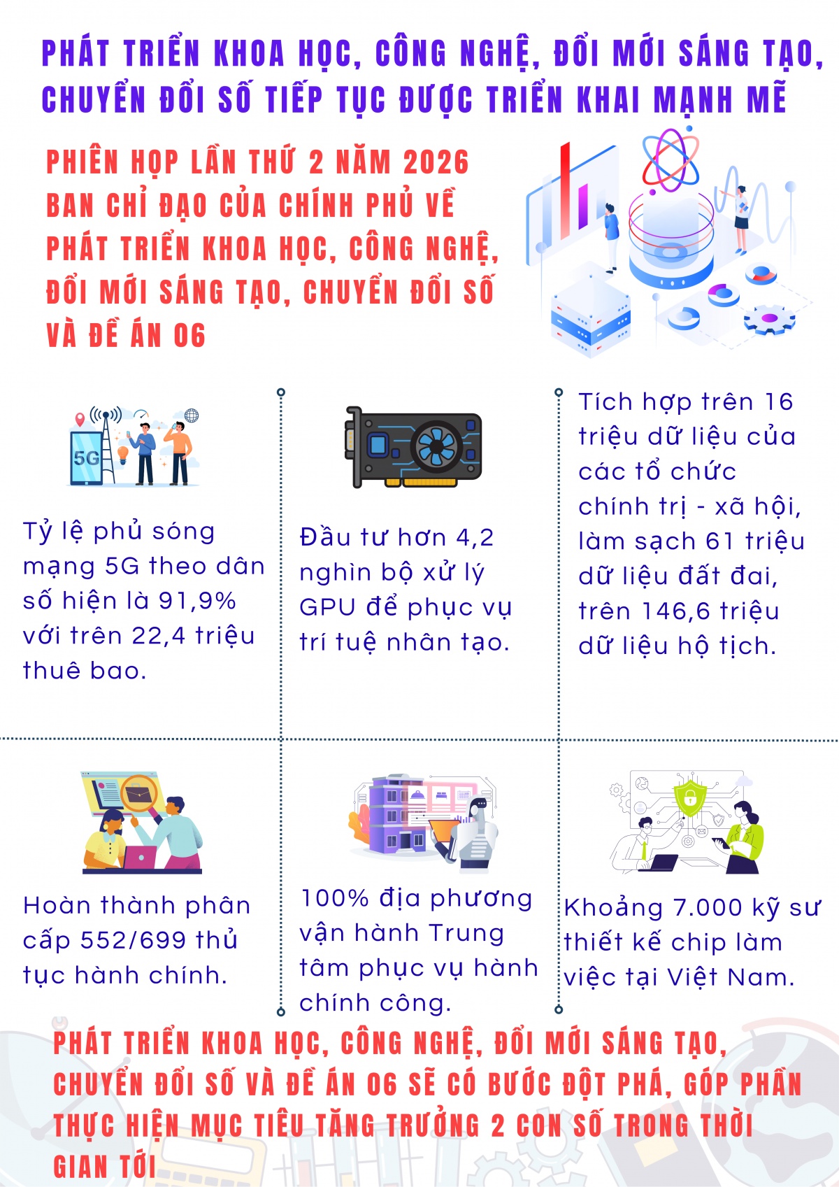 Thời gian qua, các nhiệm vụ phát triển khoa học, công nghệ, đổi mới sáng tạo, chuyển đổi số và Đề án 06 tiếp tục được triển khai mạnh mẽ, rộng khắp, lan tỏa tới hầu hết các ngành, lĩnh vực và mọi mặt đời sống.